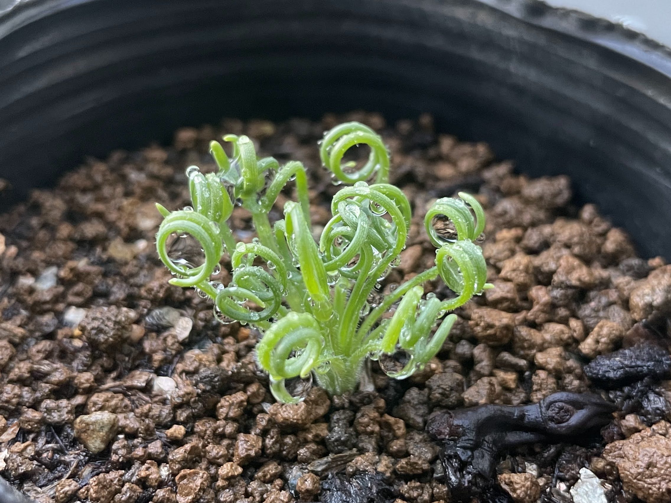 部屋に取り込んだフリズルシズル。葉の巻き方はかなり個体差があるように見えます。その分改良の余地ありと見えます。