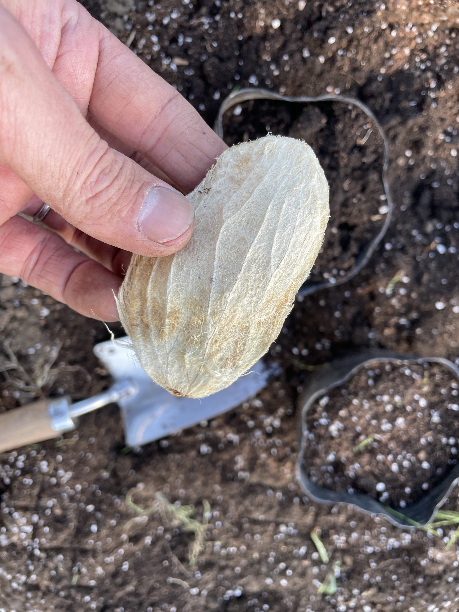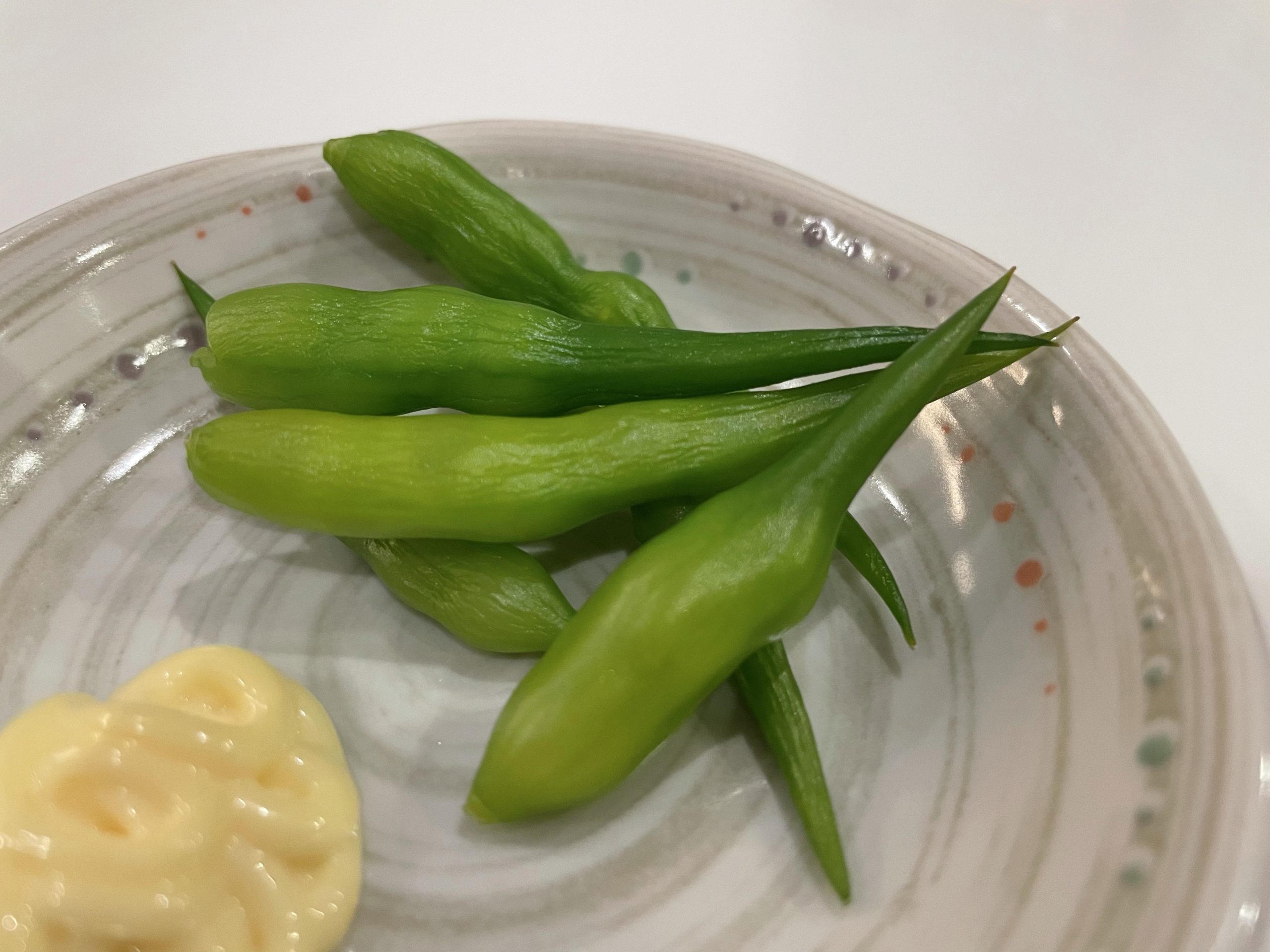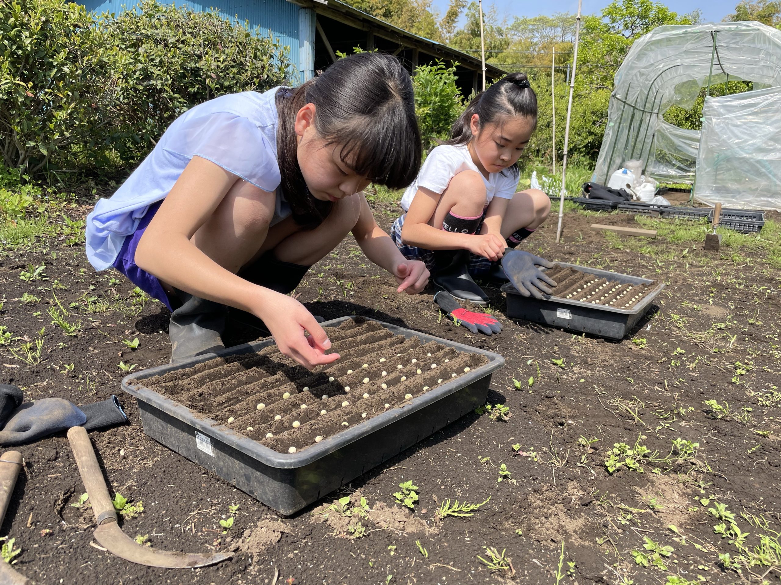 今日はチビ助手達に枝豆を播いてもらいました。品種はマキノフ農園でもお世話になって来た早生大豊緑枝豆。一袋でおよそ100個くらい。夏が楽しみです。