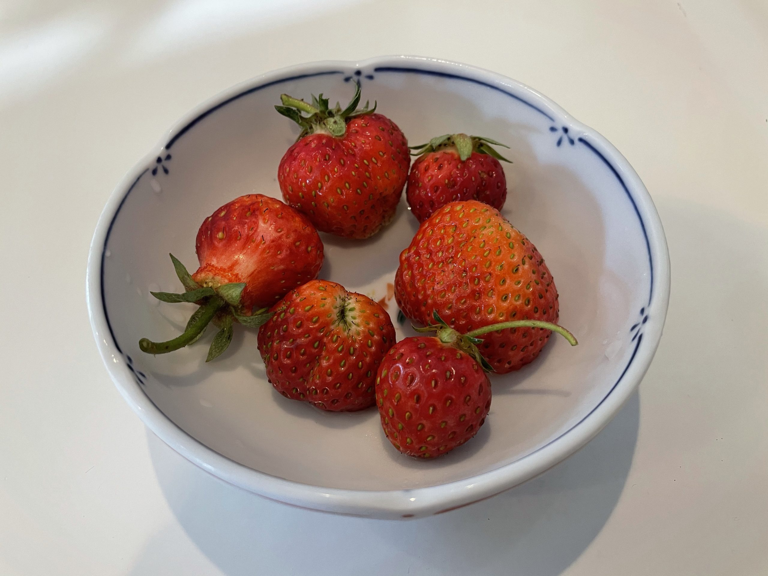 イチゴは少ないながら実が色づいて来たのでチビ助手達が収穫。やはりフルーツはテンションが上がりますね。形は良くないし虫も食っていますが、味は良かったです。