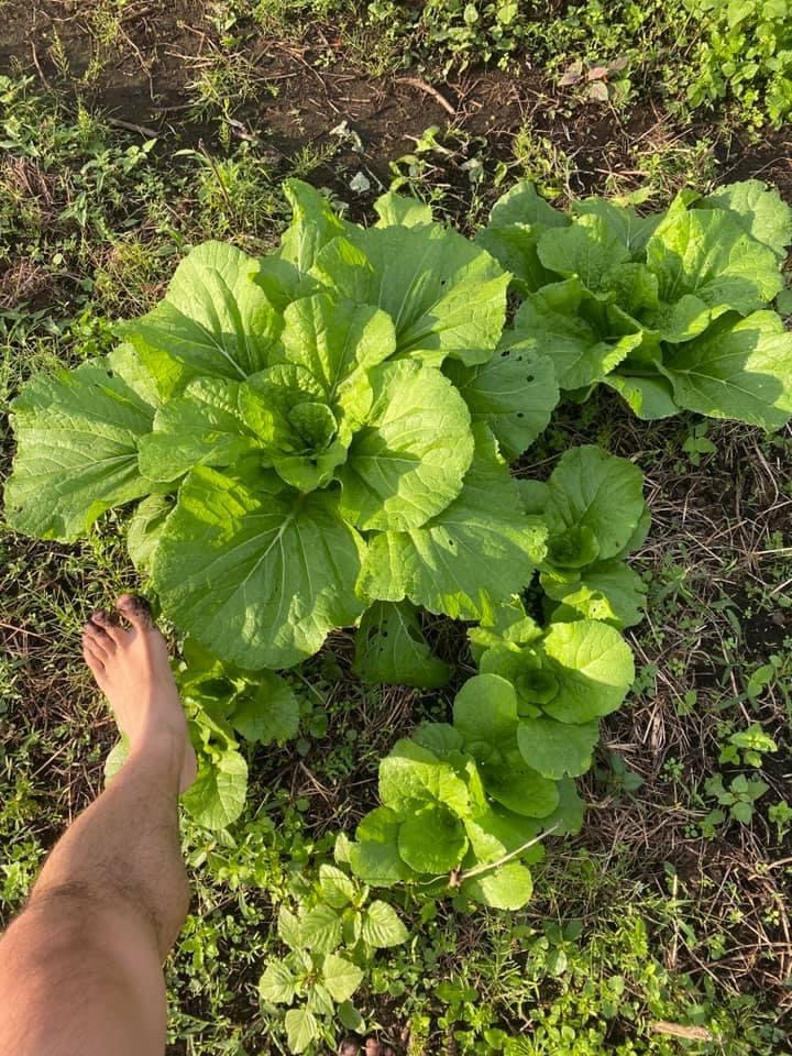 今日は早朝に野良仕事。木曽カブとみやまコカブの虫取りと間引き。完全に「収穫」と言えるくらいの量の菜葉が採れた。湧水で洗って持ち帰る。漬物にして食べたら、絶品だった。特にみやまコカブは虫食いがひどい反面食感と味が素晴らしい。
