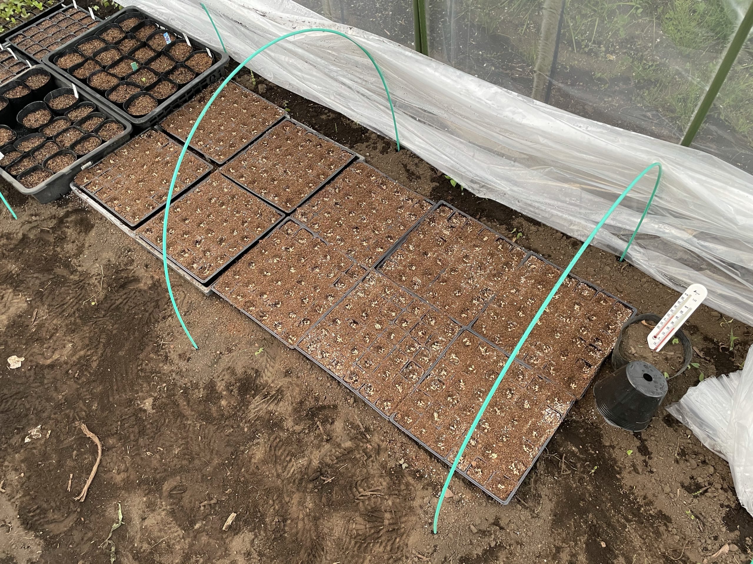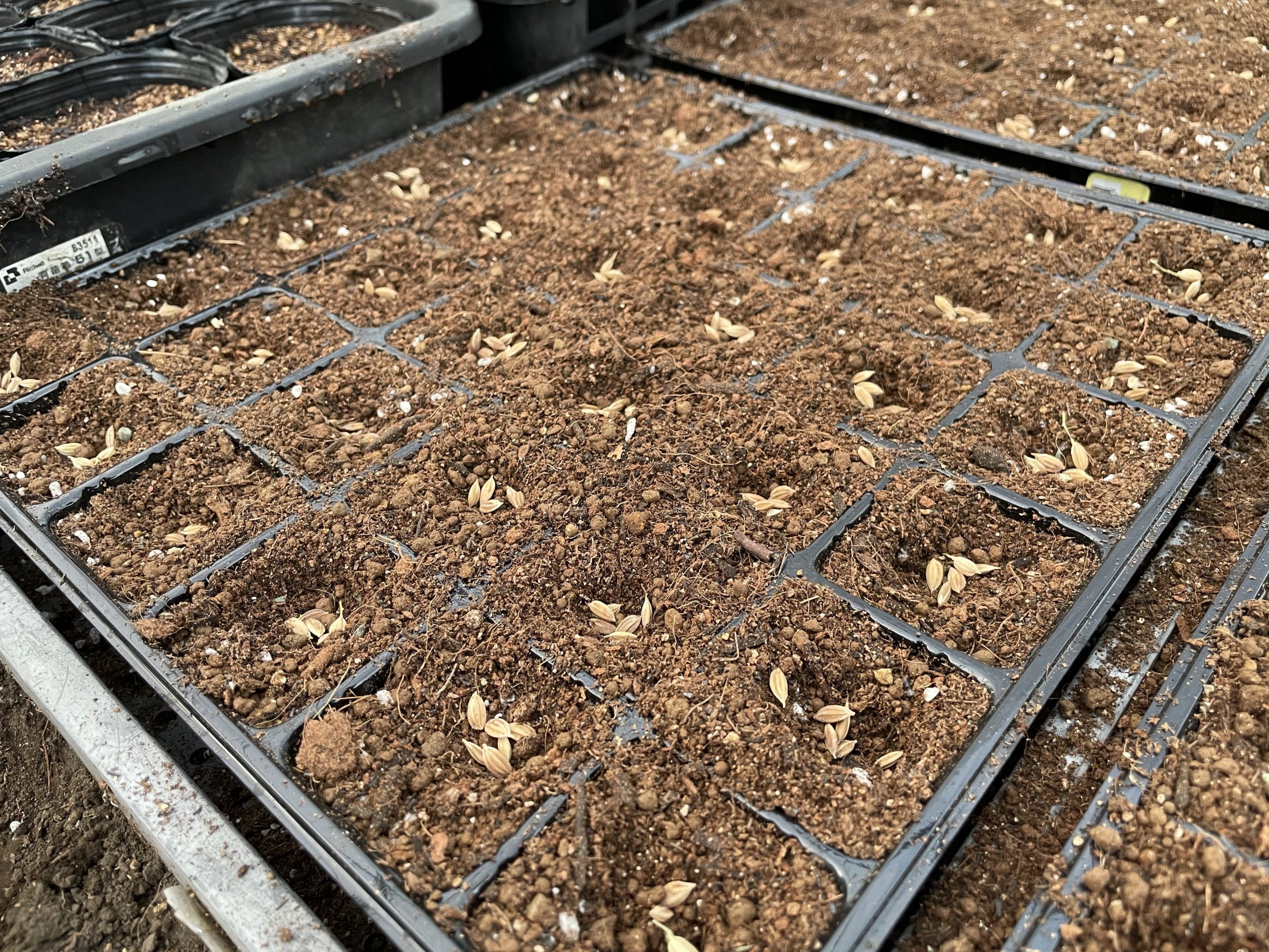 日没間際に急いで種播き。浸種なしだけどちゃんと出るかな?