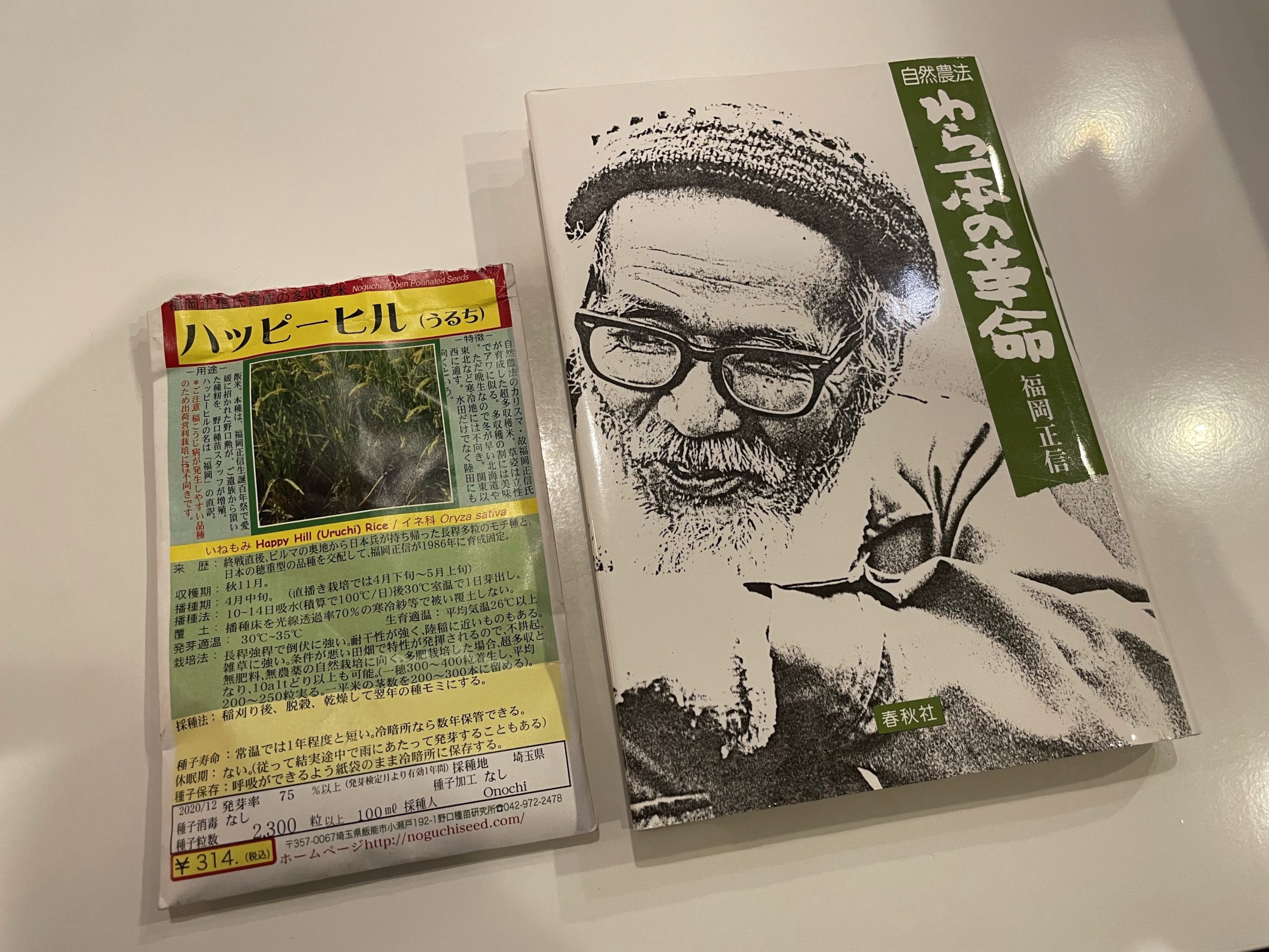 自然農法で有名な福岡さんが育成したという、その名も「ハッピーヒル」。「幸せな蛭」ではなく、福岡の直訳らしい。田でも畑でもいける、自然農向きの特別な稲です。