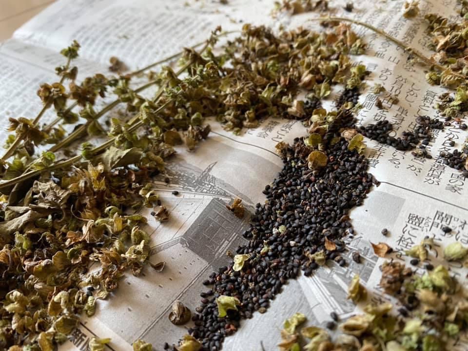マキノフ農園で収穫したバジルの穂が乾燥したので種取り作業もした。来年は沢山苗を作れそう。