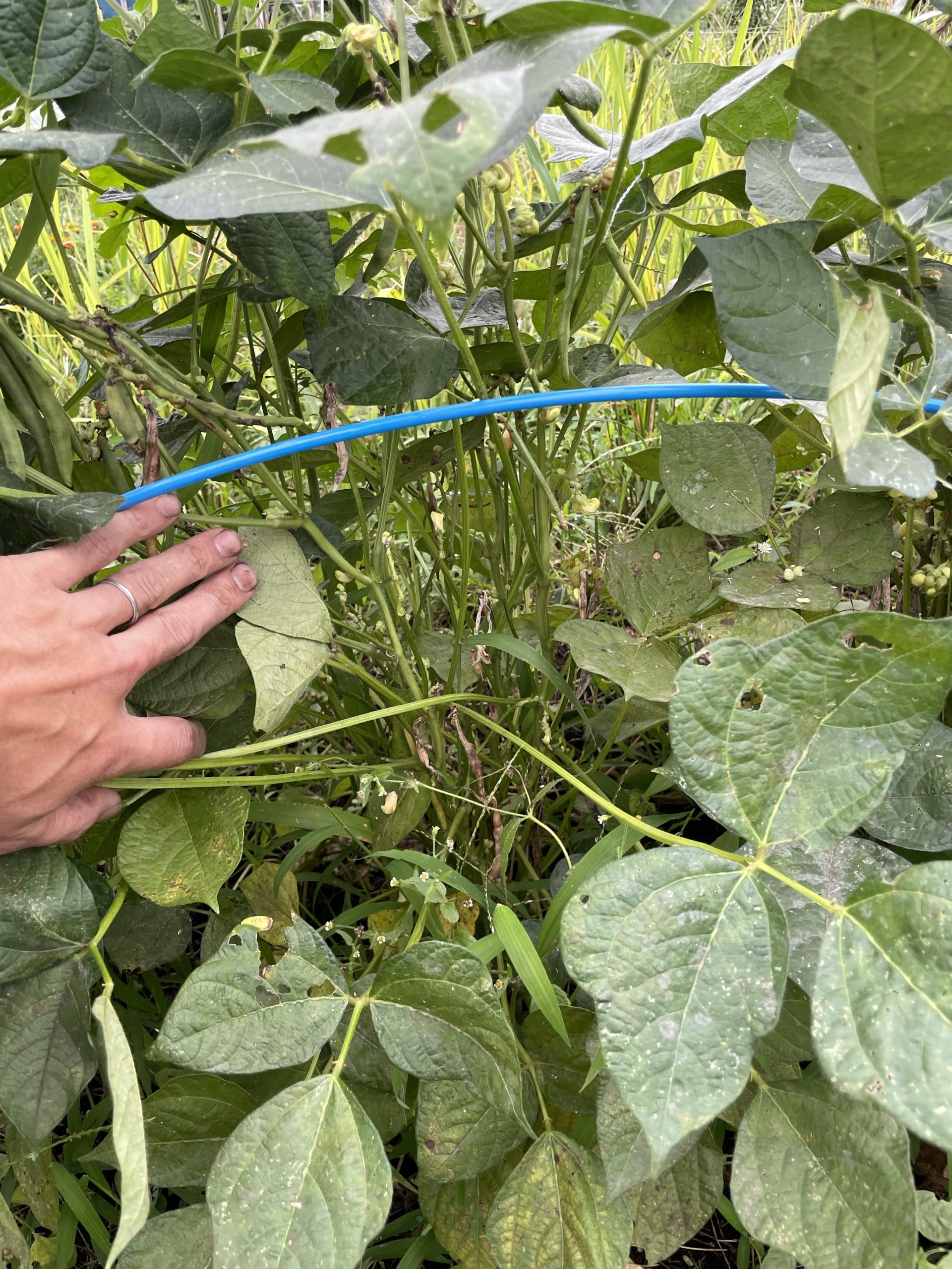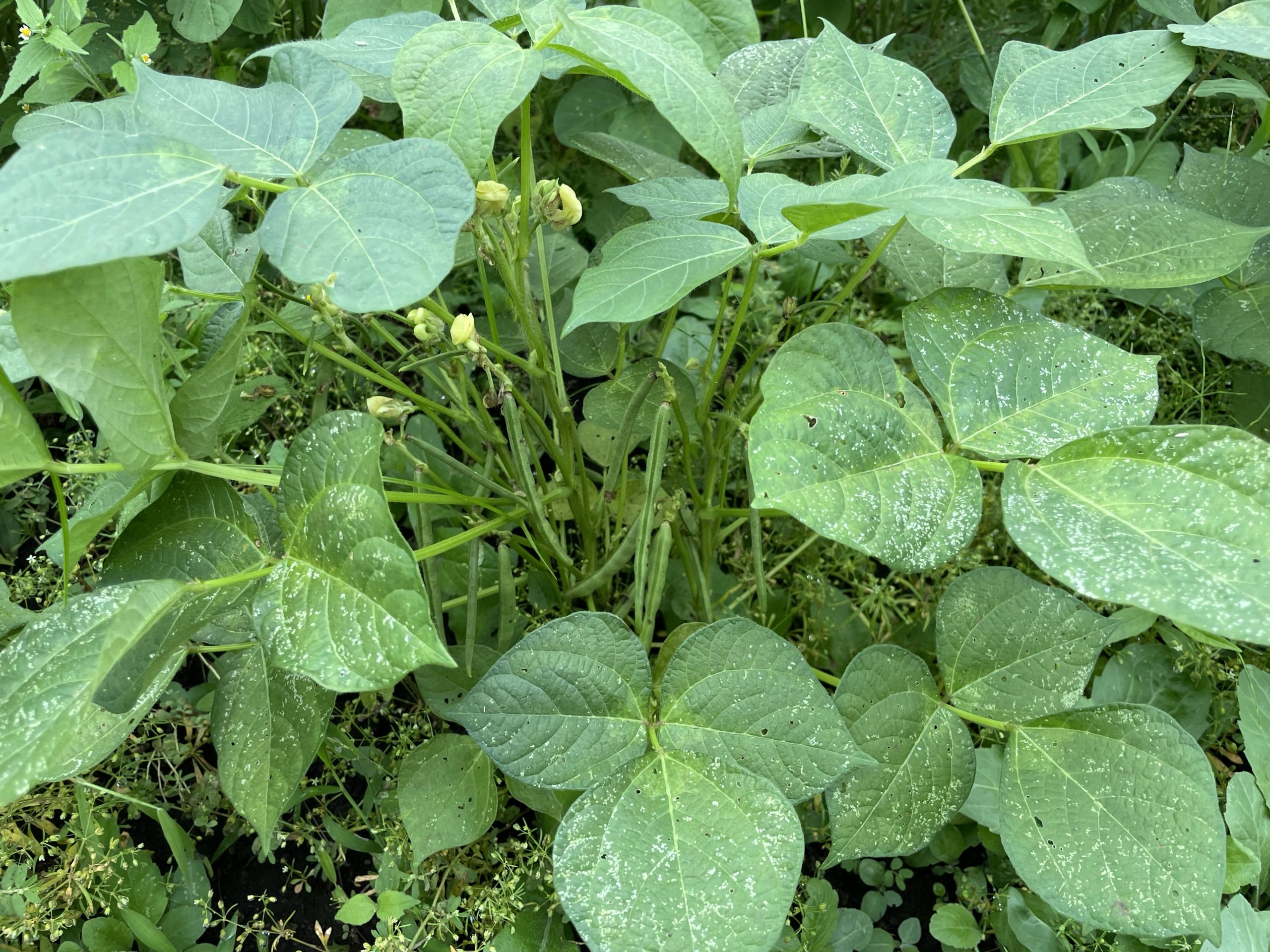 小豆がそろそろ収穫かなぁと葉をめくって覗いてみると、アレ‥カビてる? ここにきて雨が続いたからか、何か怪しい感じ。