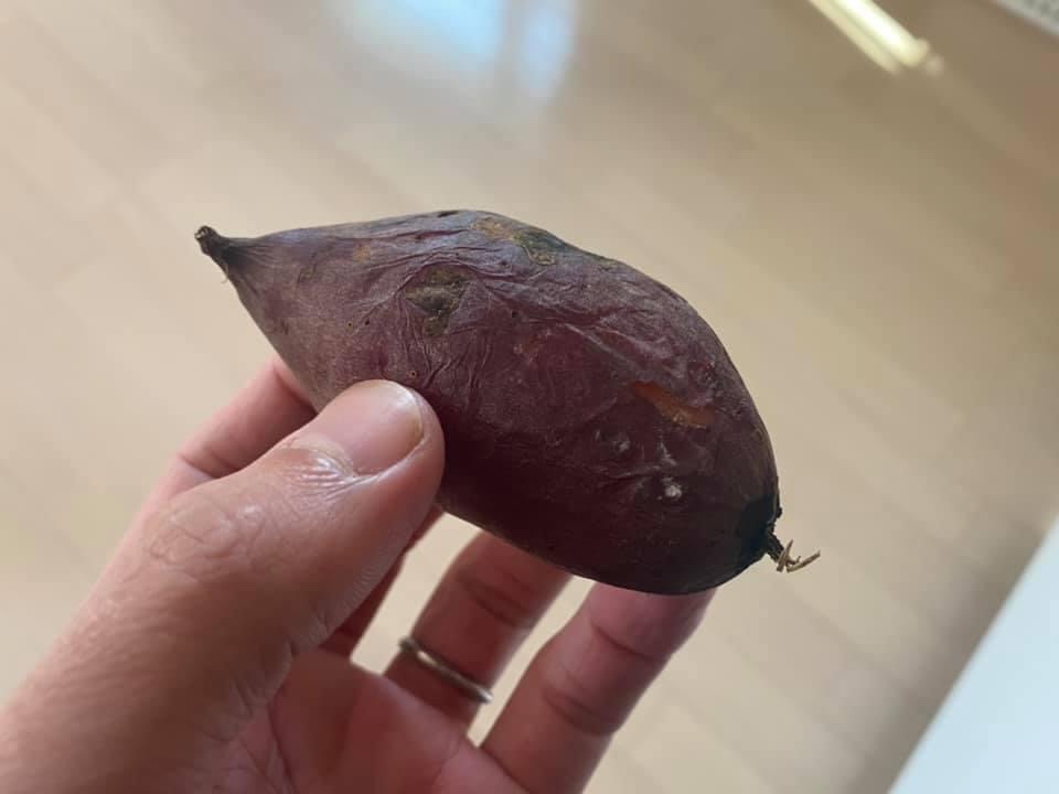 畑で掘られた穴の埋め戻しをしている間に、自宅では先日マキノフ農園で収穫した安納芋の焼き芋がストーブの上で焼かれていた。今日は地元の育成会で高取山の草刈りだったので、作業前に焼き立ての安納芋をいただいた。しっとりとしていて味は濃厚。これは美味しい‥。