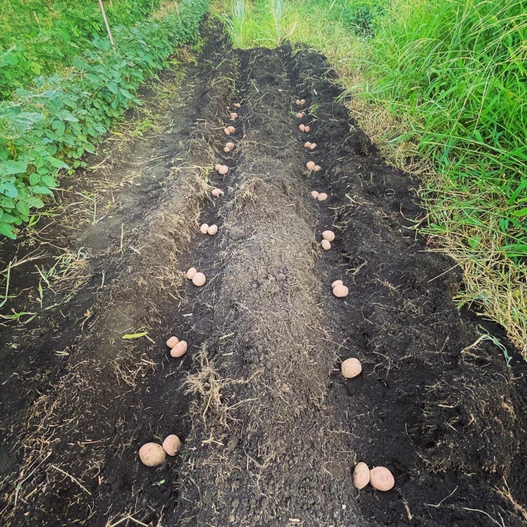 コチラはデジマ。芋がバカでかいけれど、この時期は腐りやすいと思われるので、切らずに植え付け。