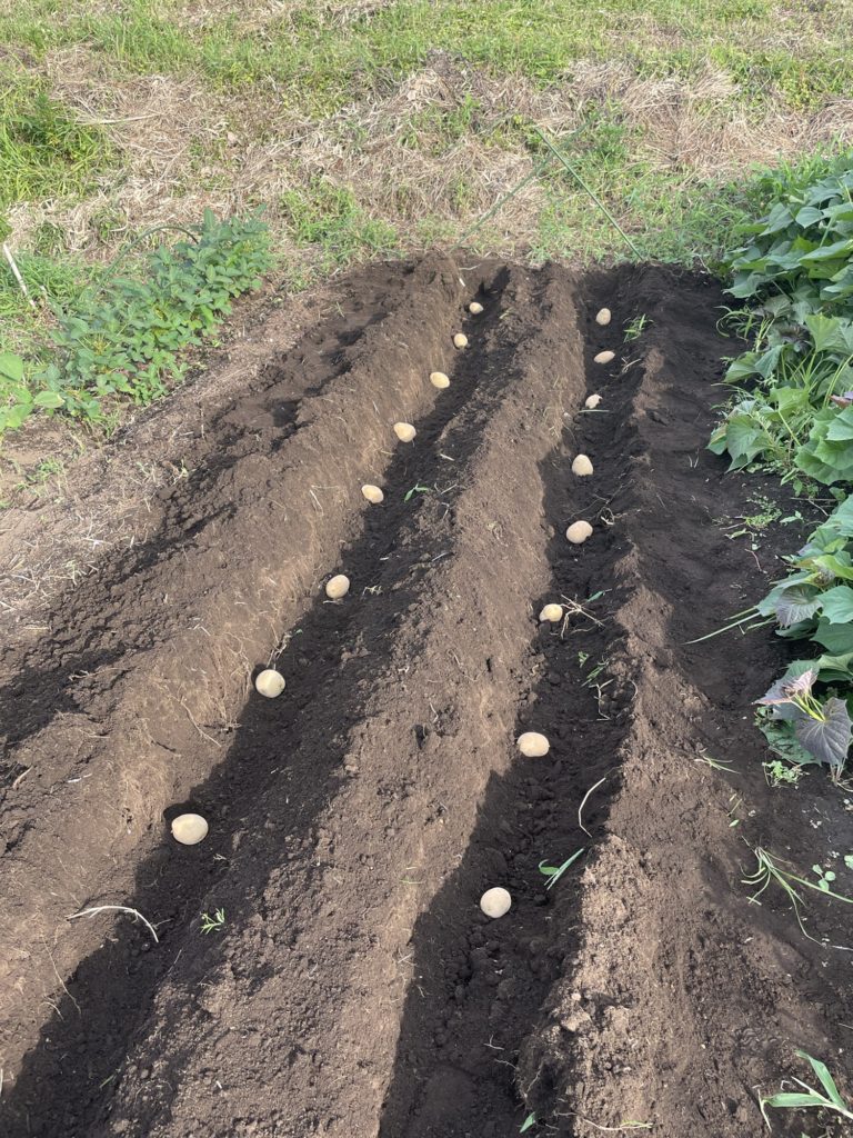 そのかわり間隔を広げて、3本仕立てくらいにすればちょうどいい芋が沢山出るのではないかと。とりあえずやってみよう‥