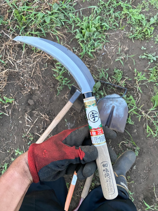 今日は先日届いた「自然農鍬」を初導入。僕が持っている農具といえば、スコップと先が3本に分かれた鍬と普通の草刈鎌。自然農で主戦力となる平鍬とノコ鎌は以前からちゃんとしたものが欲しいと思っていたが、気にいるものがなく所持していなかった。