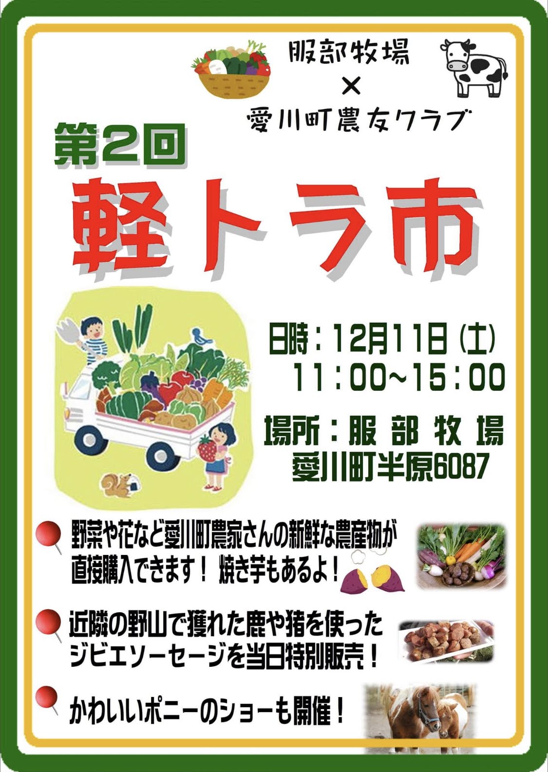 畑のご近所、愛川園芸さんからお誘いいただき、服部牧場で行われる軽トラ市に参加してきました。