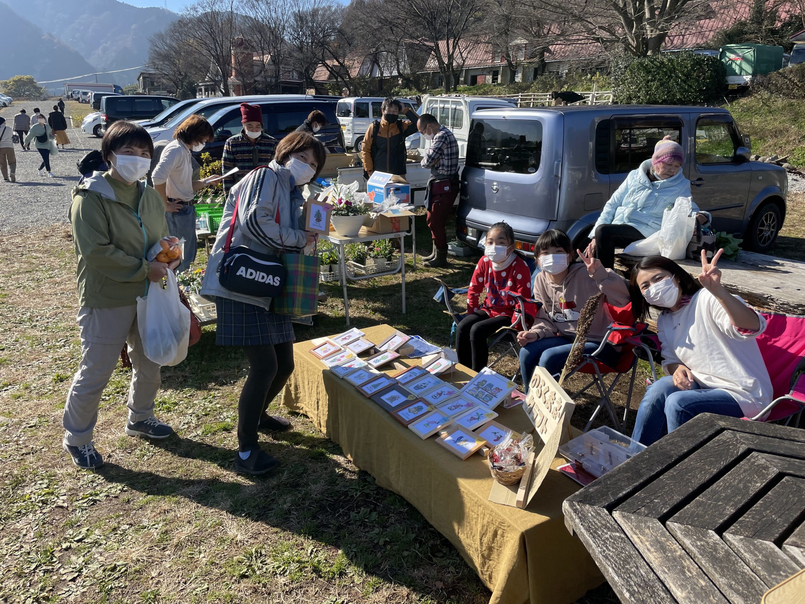 この朝市は、愛川農友クラブが主催していて、当然野菜販売がメイン。本来ならラボで作った野菜を出品したいところですが、自分達が食べる分しか作っていないので、残念ながら売れる野菜がほとんどありません。