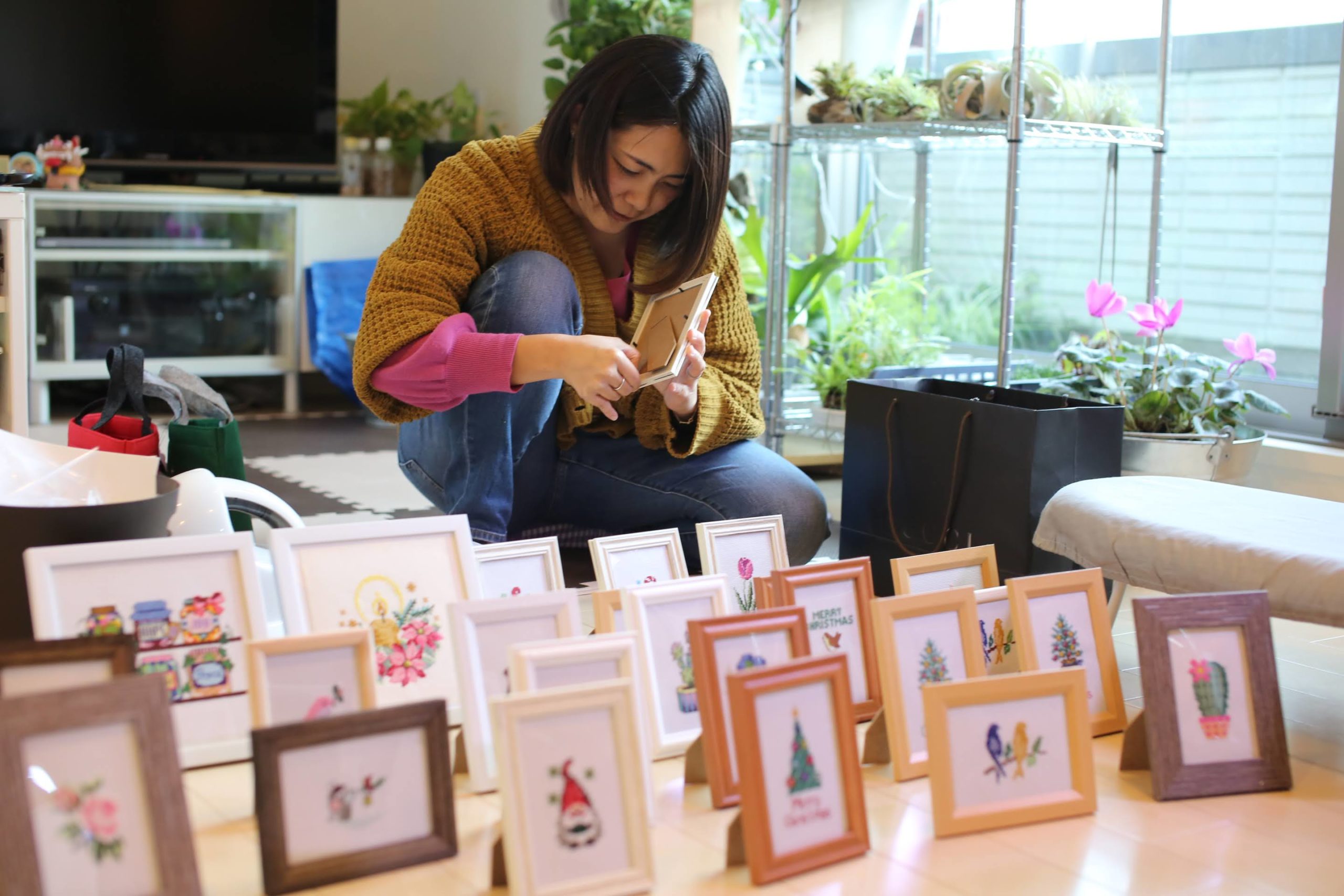 そこで、普段マナさんがメルカリで販売しているクロスステッチ(刺繍)を出品することにしました。出店を決めてからの1ヶ月で25作品がなんとか完成。