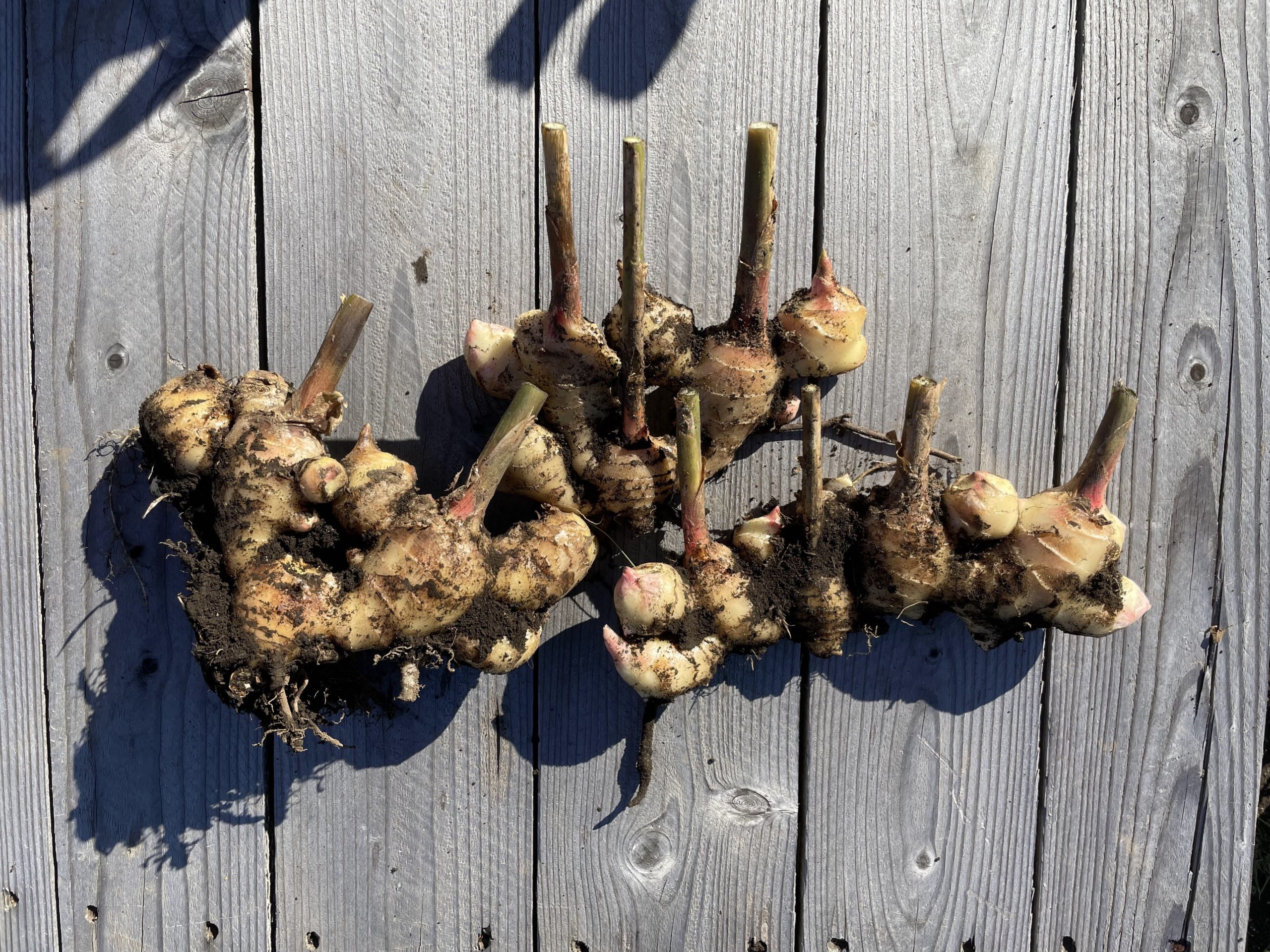 こちらは生姜。あまり増えませんでした。植え付けが遅れたせいかもしれません。少しだけ食べてあとはほとんど来年の種にしたいと思います。