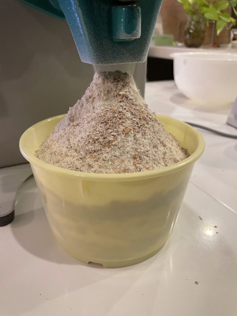 小麦粉がなくなったので製粉もやりました。2回機械を通すのでそれなりに時間がかかります。初めは石臼も考えていましたが、電動にしてよかった‥