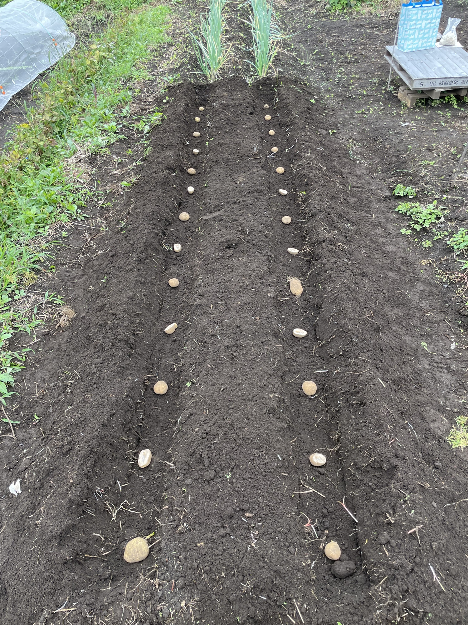 春に取れた種ジャガイモ、デジマ、アンデスレッド各2kgの植え付け。デジマは前回大きなイモばかりで、仕方なく半分に切って種芋を用意。植え付け場所は九条ネギを育てていた畝の跡です。ジャガイモとネギは交互作をすると連作障害なく同じ畝で作り続けられ...